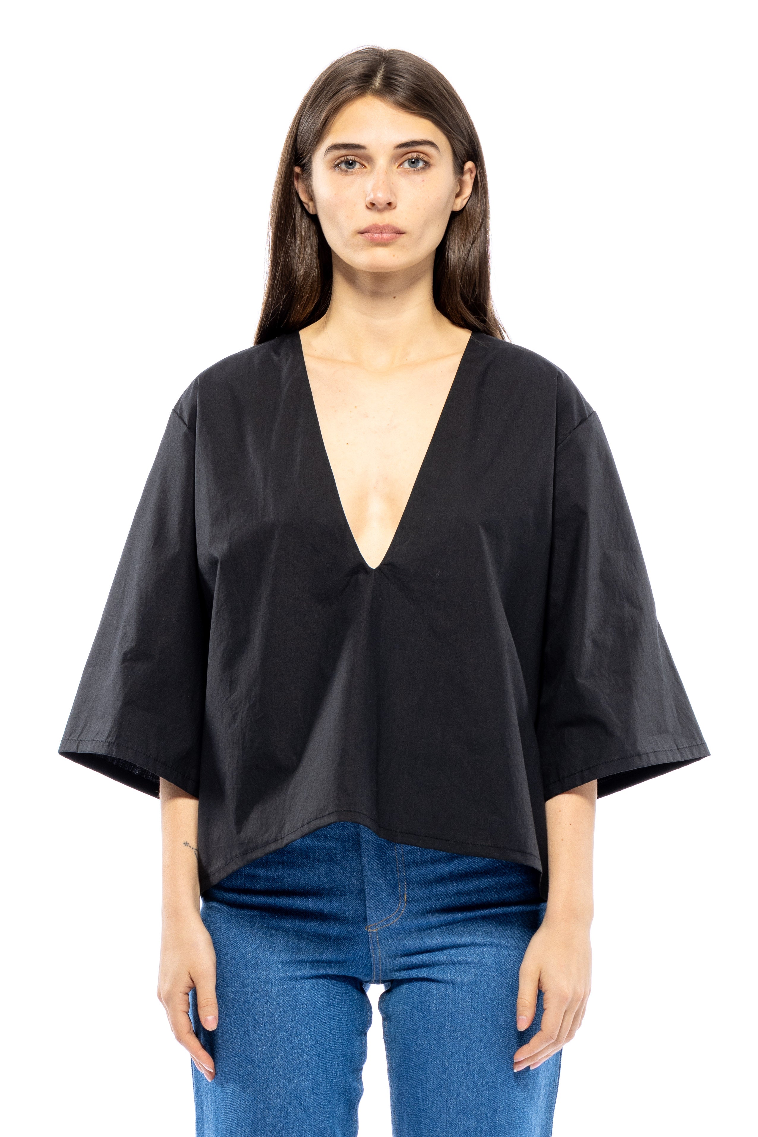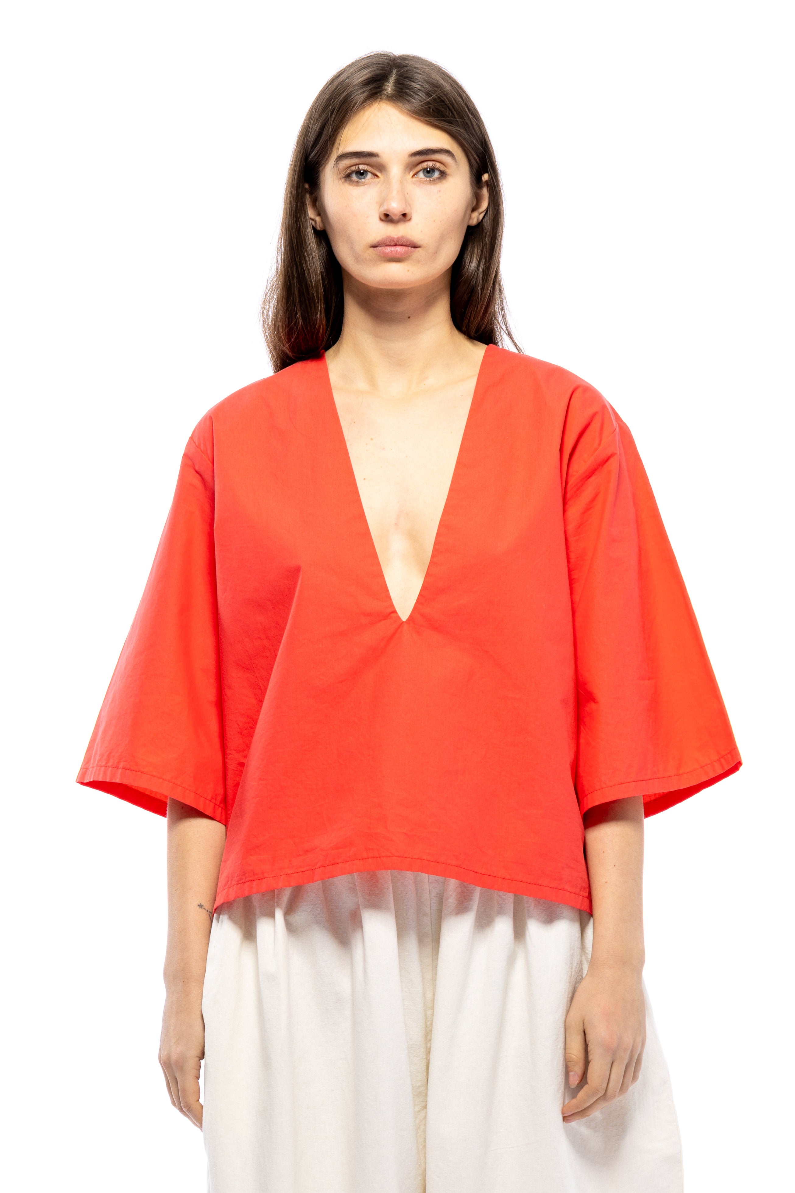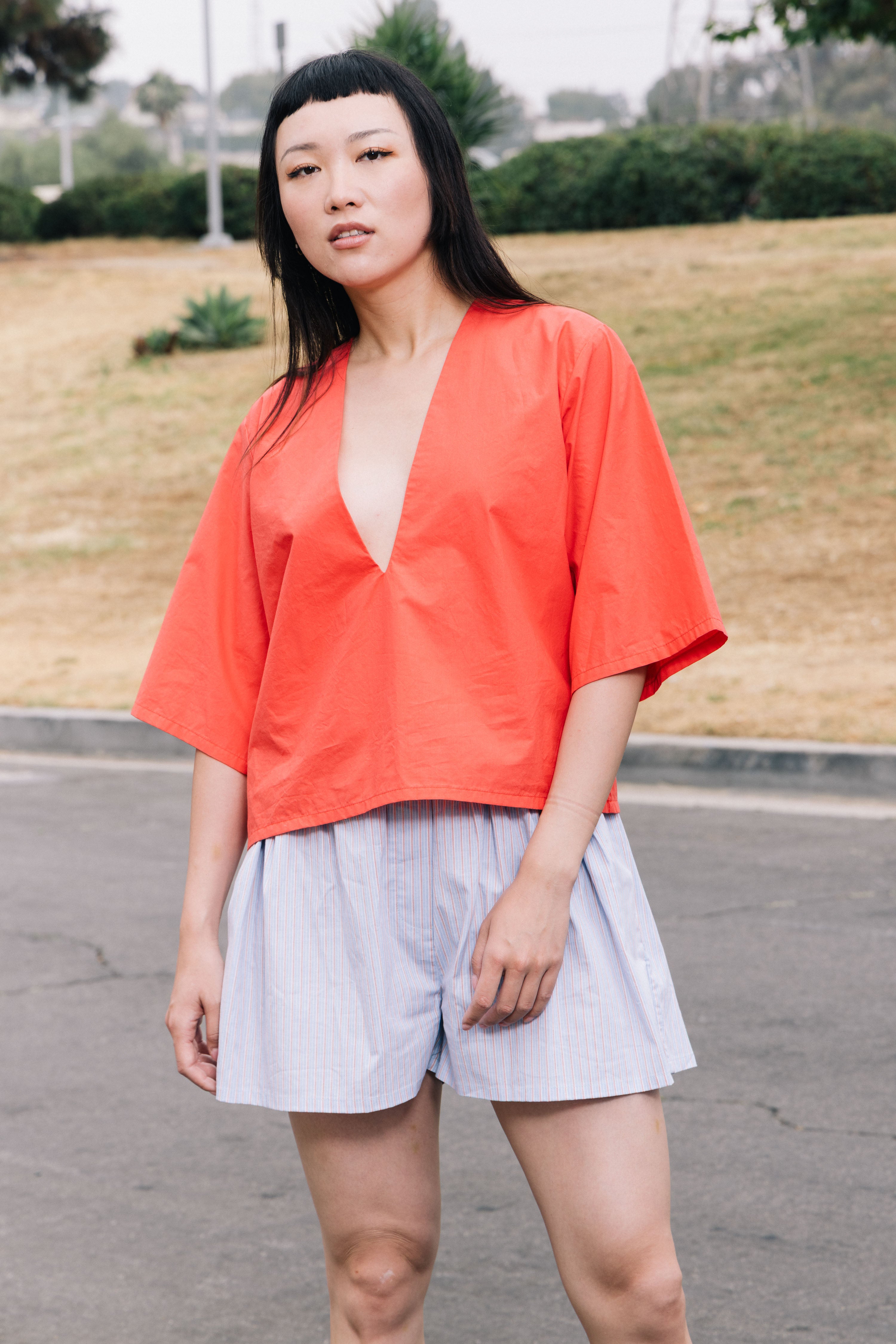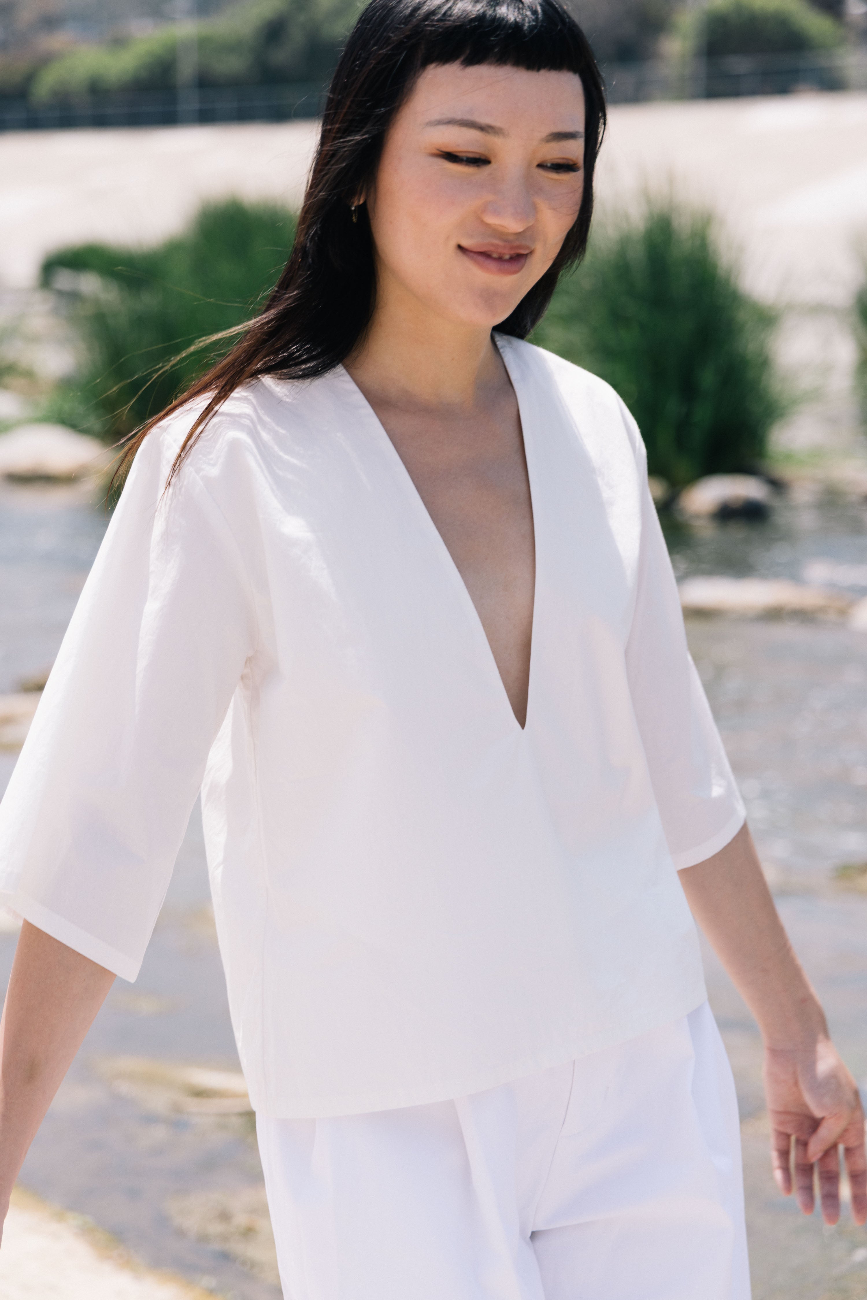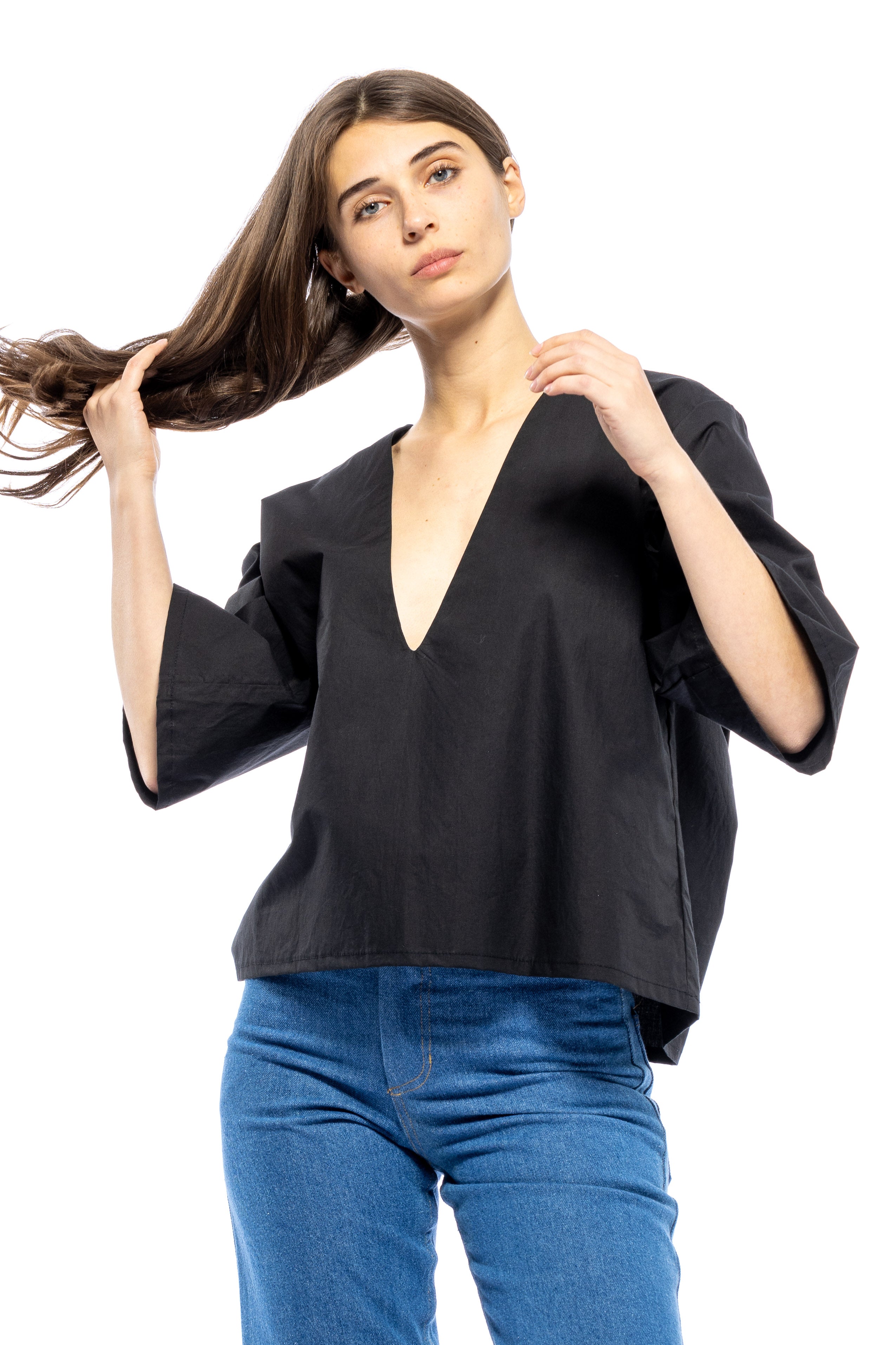 She's Back! Our best seller, Poppy Top continues to be in demand. She's not shy. This plunging V-neck has a punch to it. She's so easy to style with your favorite bottoms and for a summer peek-a-boo, wear over your favorite bikini top or lace bra. If you don't want to show too much, a little tape to keep the v-neck in place always helps. From A to D cups, she's flirty.