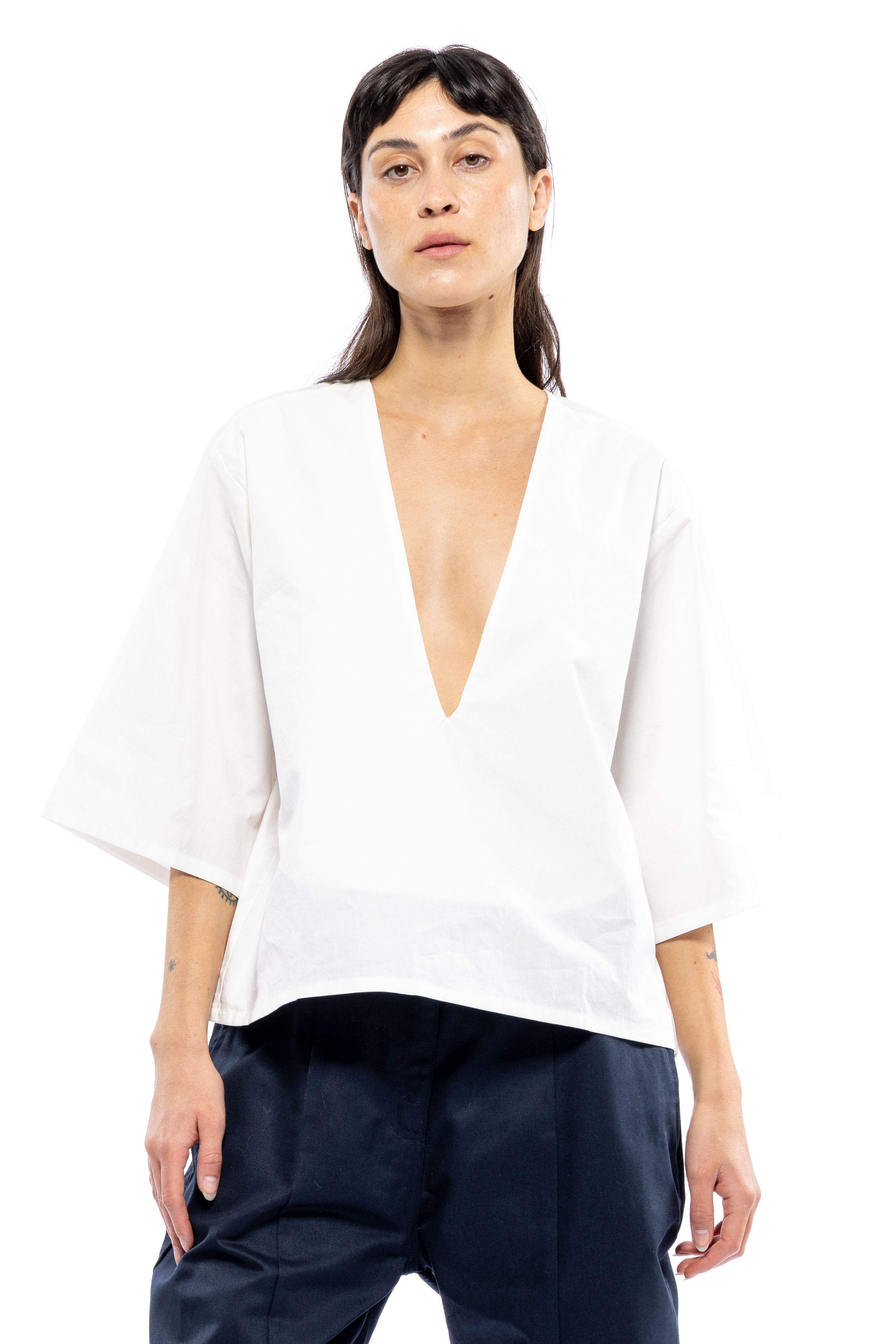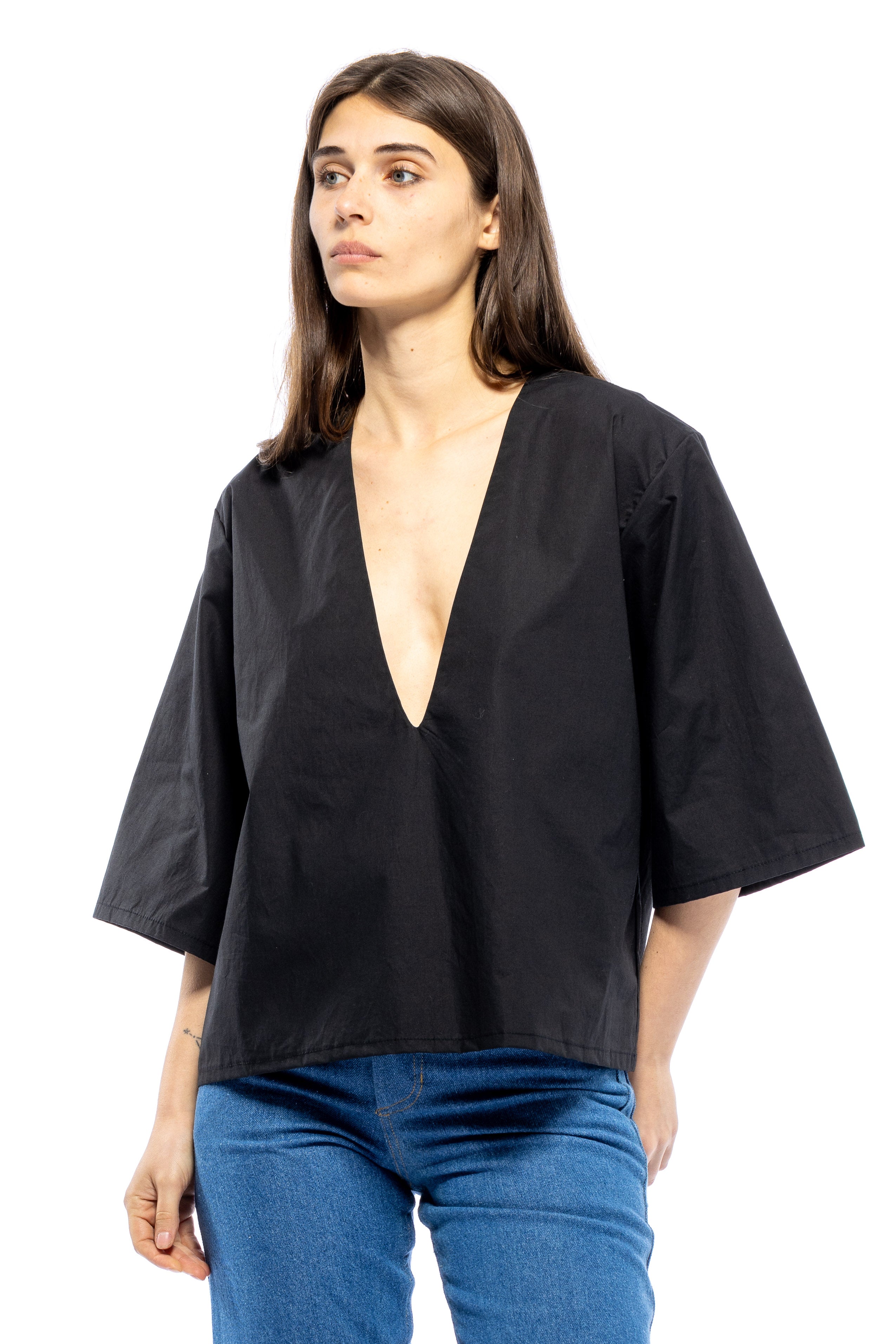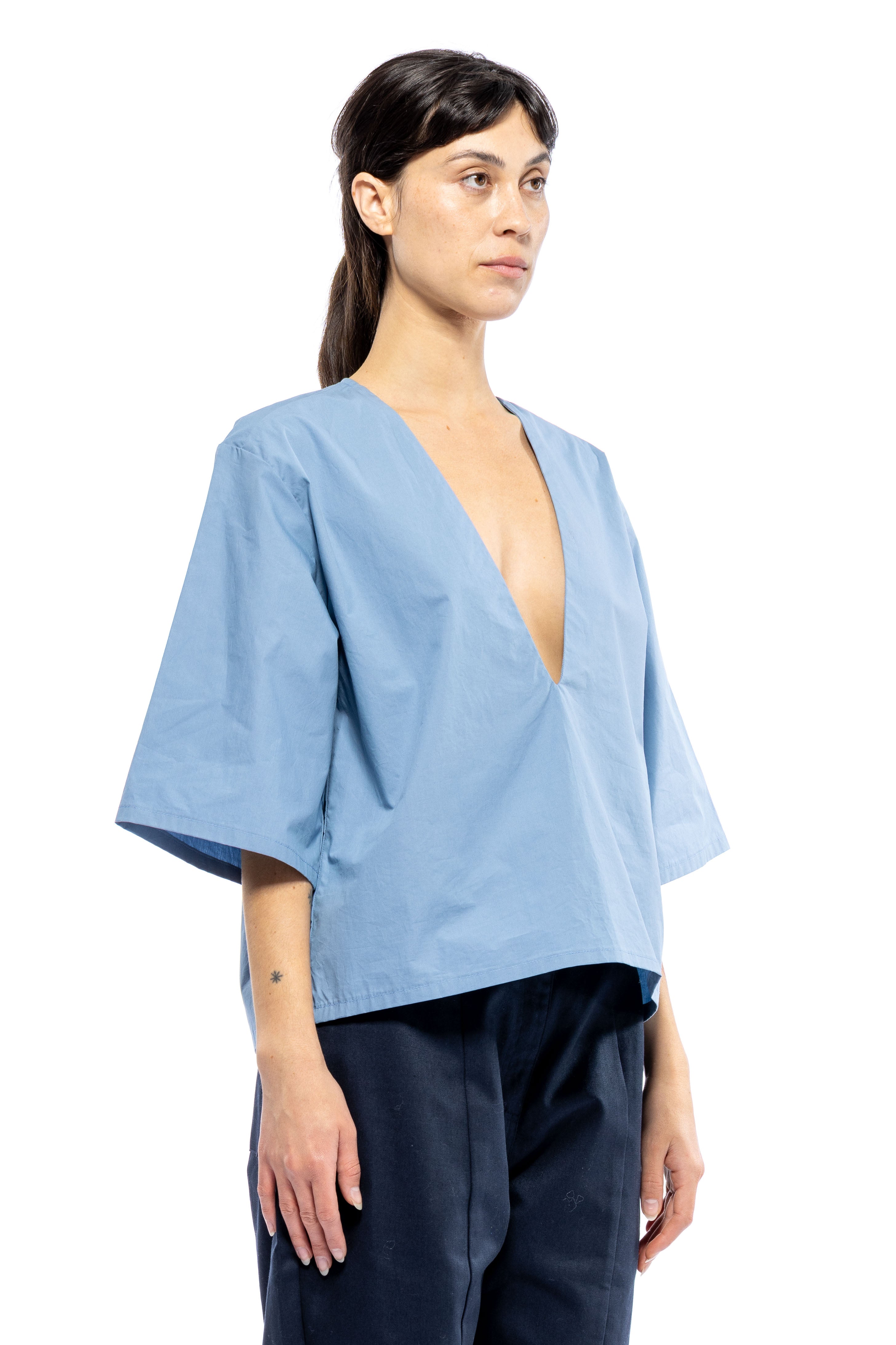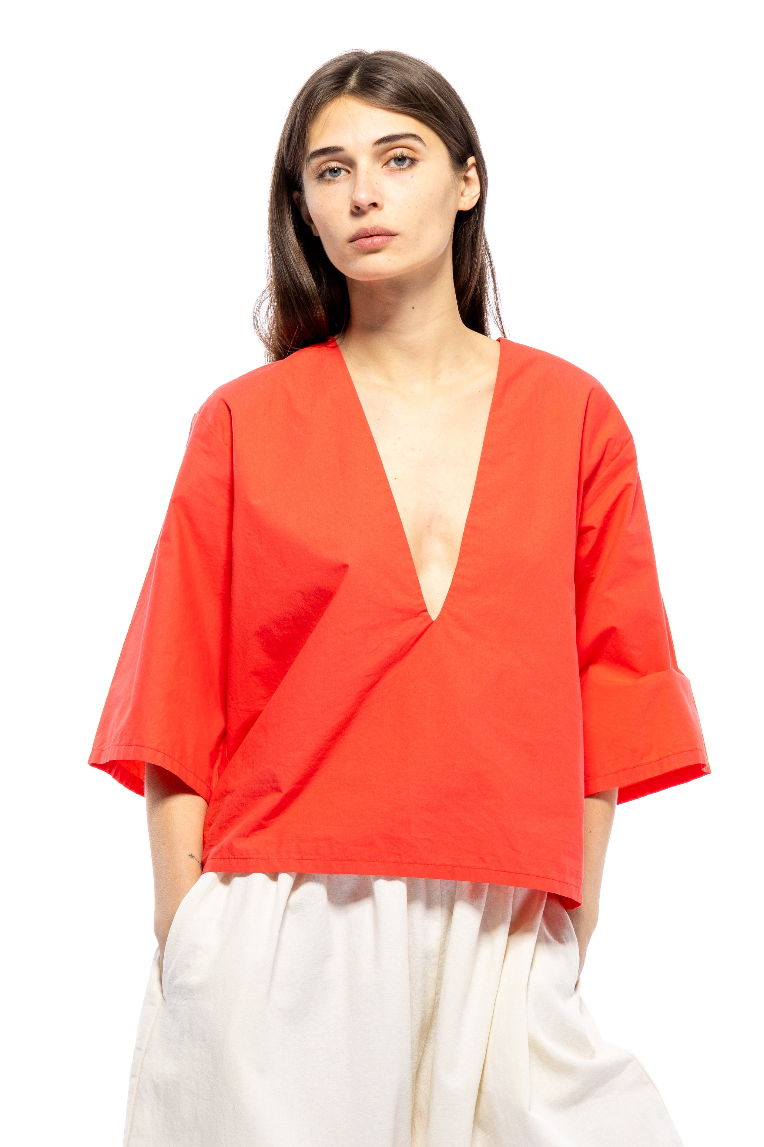 She's Back! Our best seller, Poppy Top continues to be in demand. She's not shy. This plunging V-neck has a punch to it. She's so easy to style with your favorite bottoms and for a summer peek-a-boo, wear over your favorite bikini top or lace bra. If you don't want to show too much, a little tape to keep the v-neck in place always helps. From A to D cups, she's flirty.