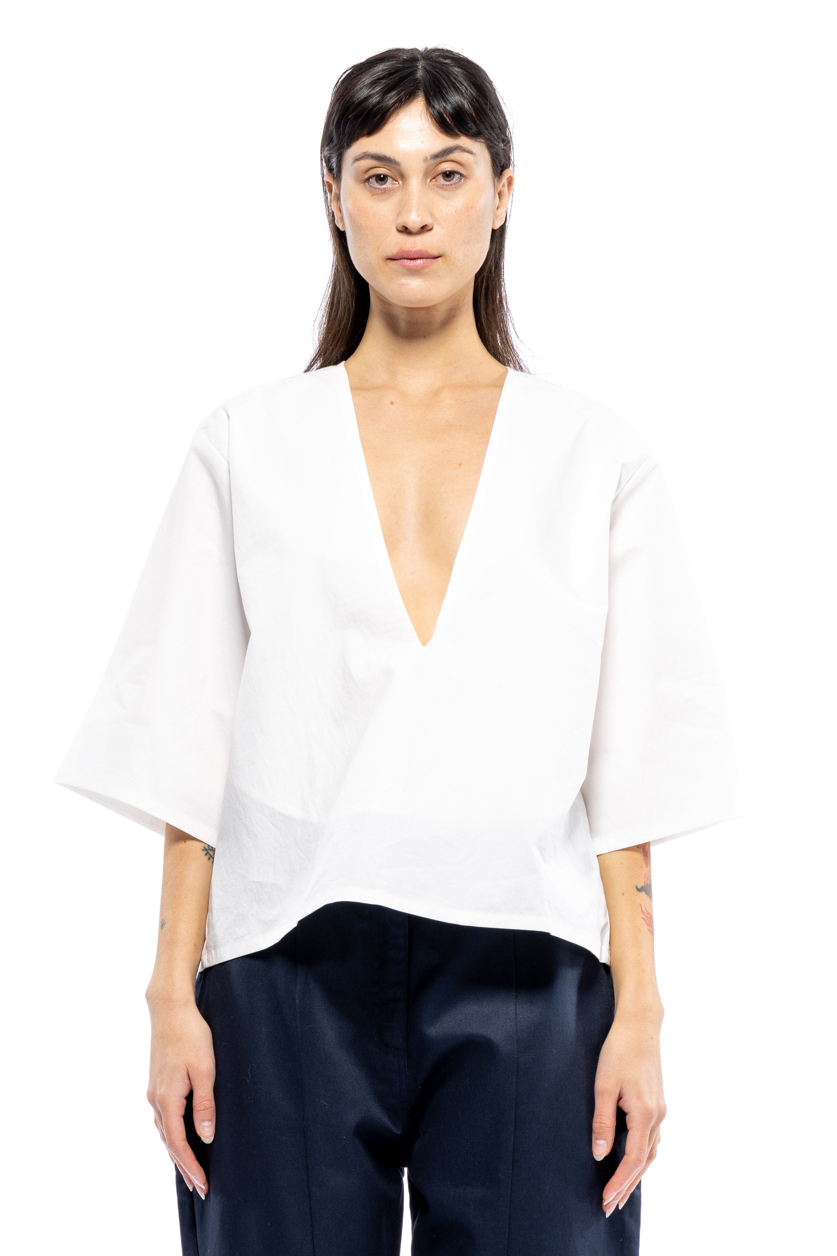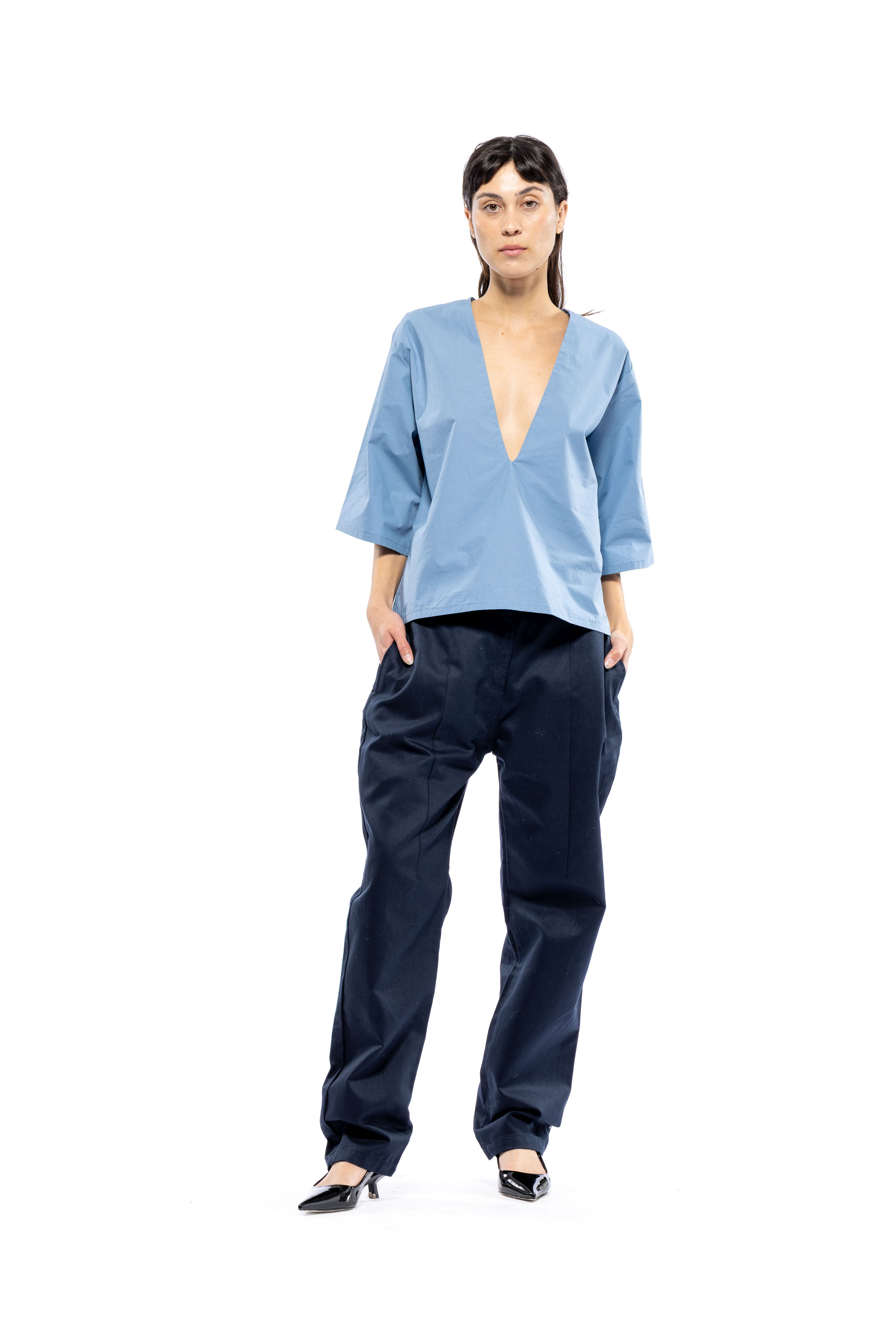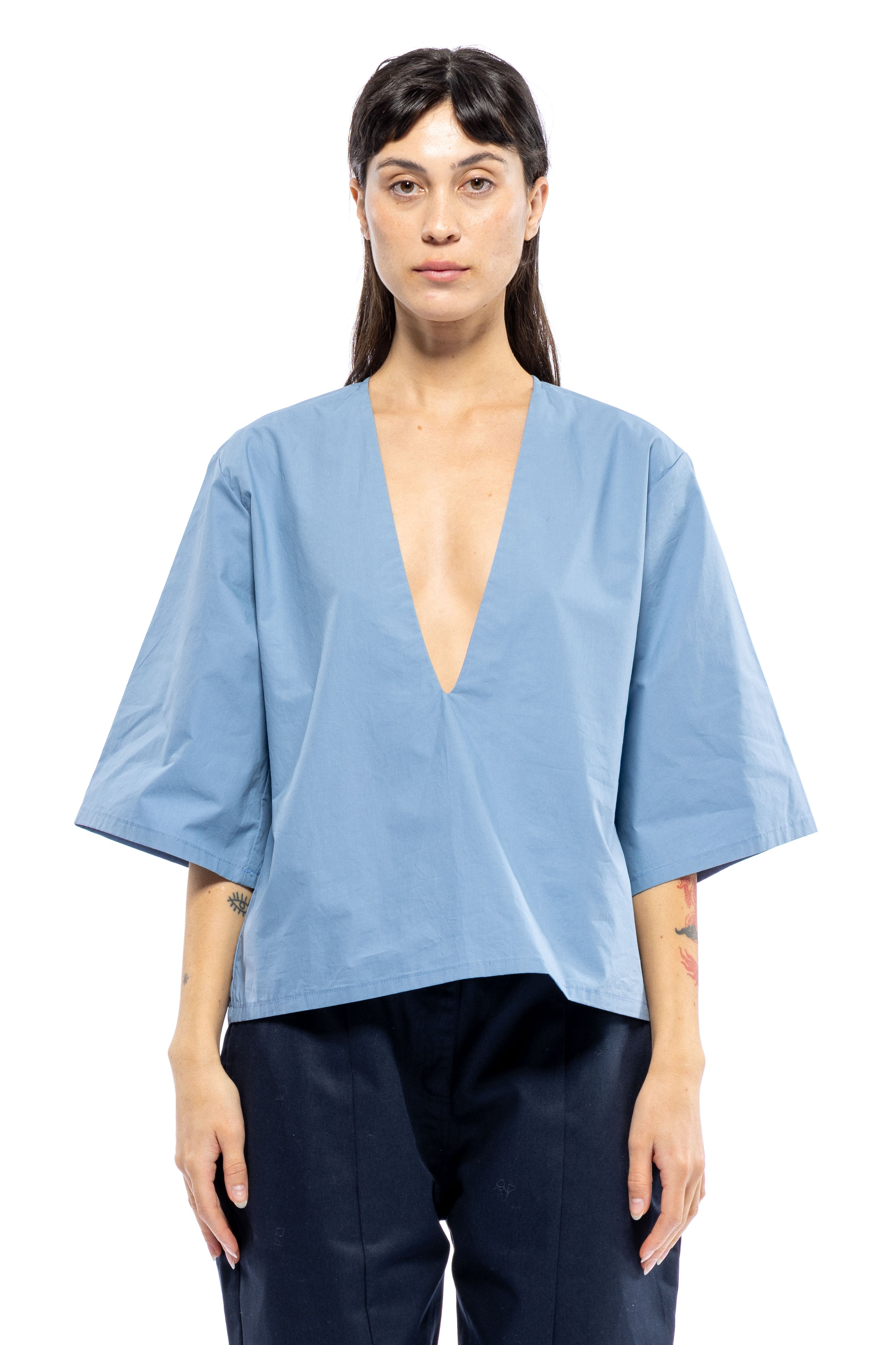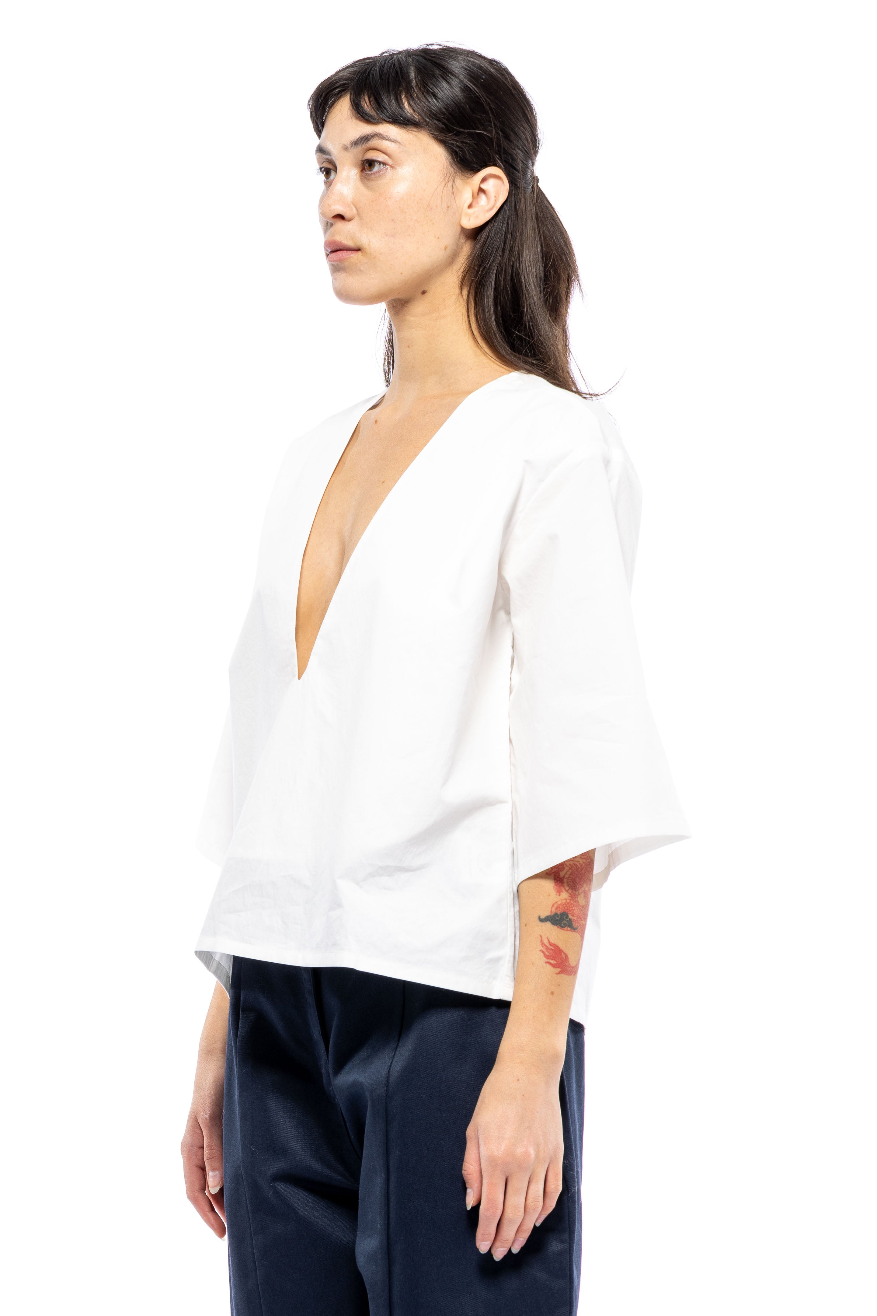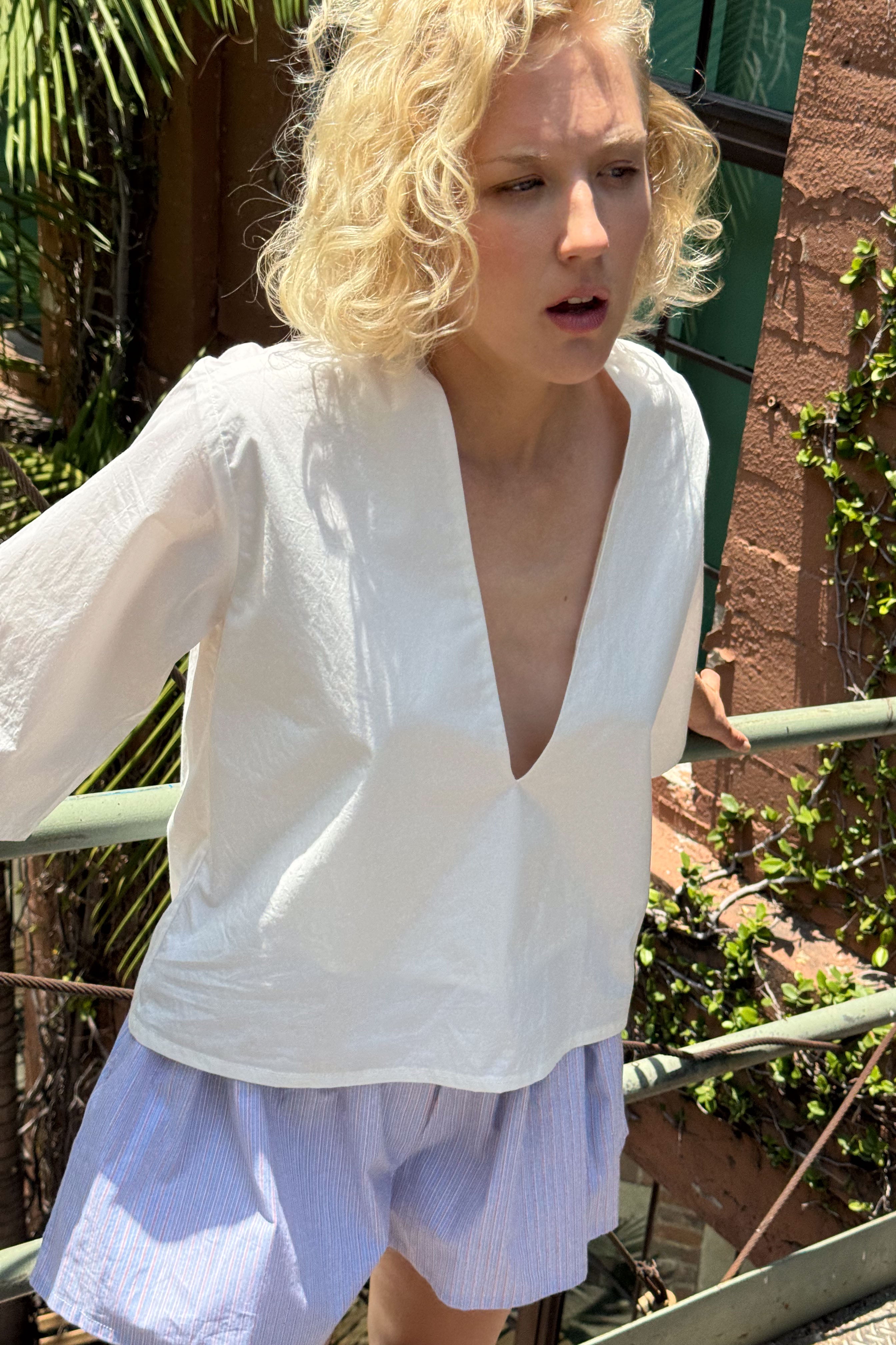 She's Back! Our best seller, Poppy Top continues to be in demand. She's not shy. This plunging V-neck has a punch to it. She's so easy to style with your favorite bottoms and for a summer peek-a-boo, wear over your favorite bikini top or lace bra. If you don't want to show too much, a little tape to keep the v-neck in place always helps. From A to D cups, she's flirty.