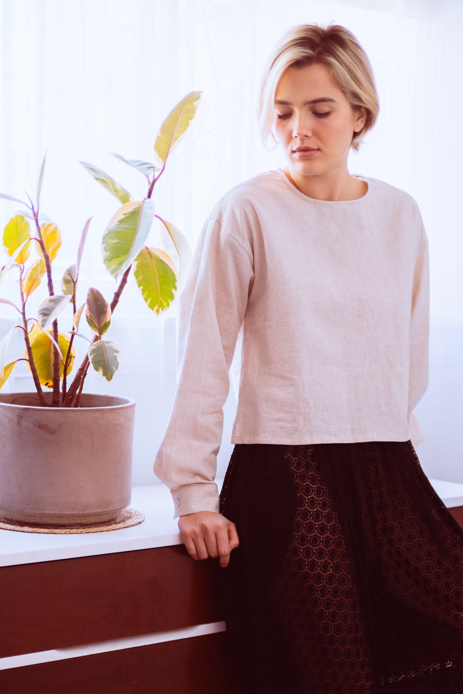 A simple round neck long sleeves boxy top. We love a good simple top that you can easily wear on any days of the week.
