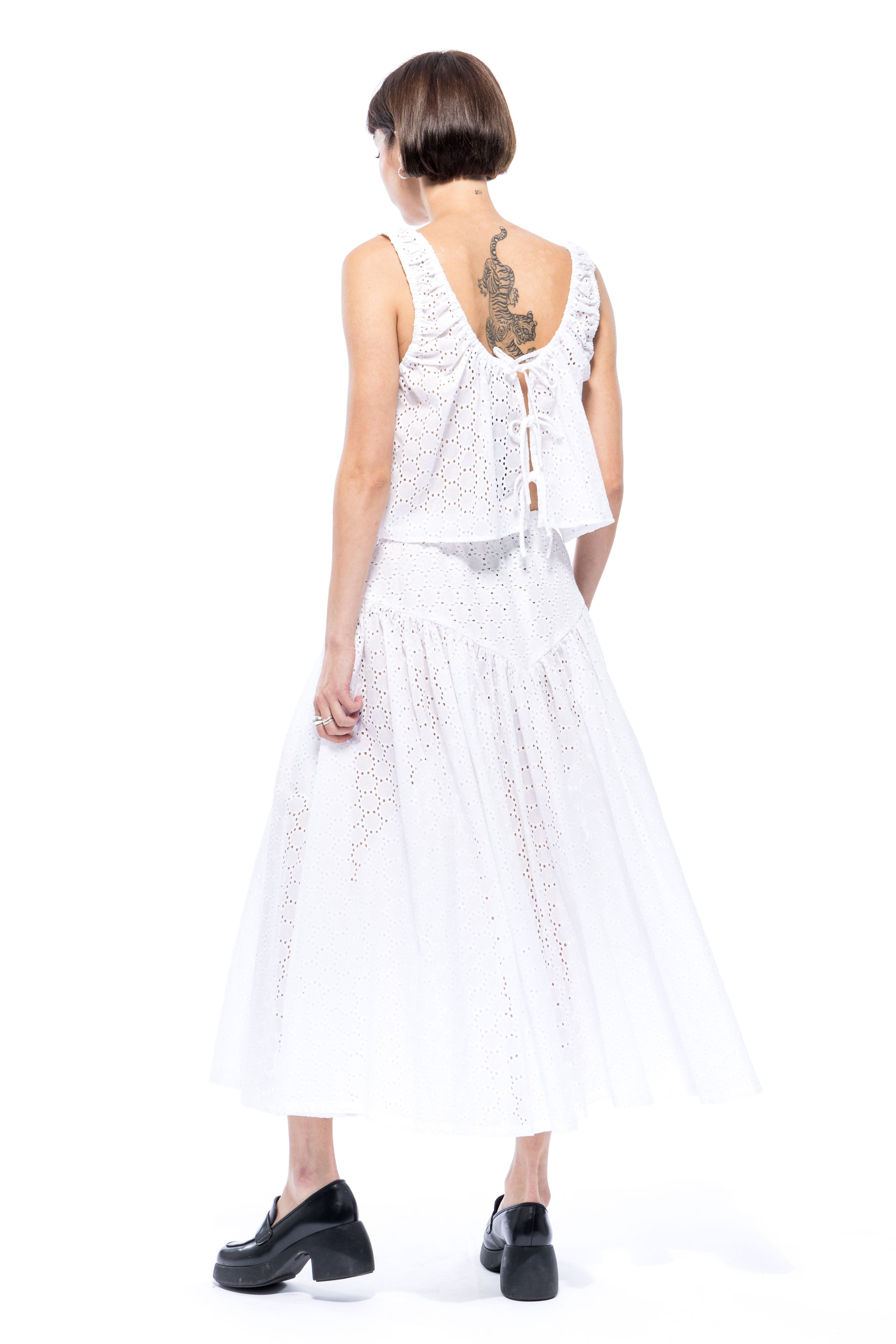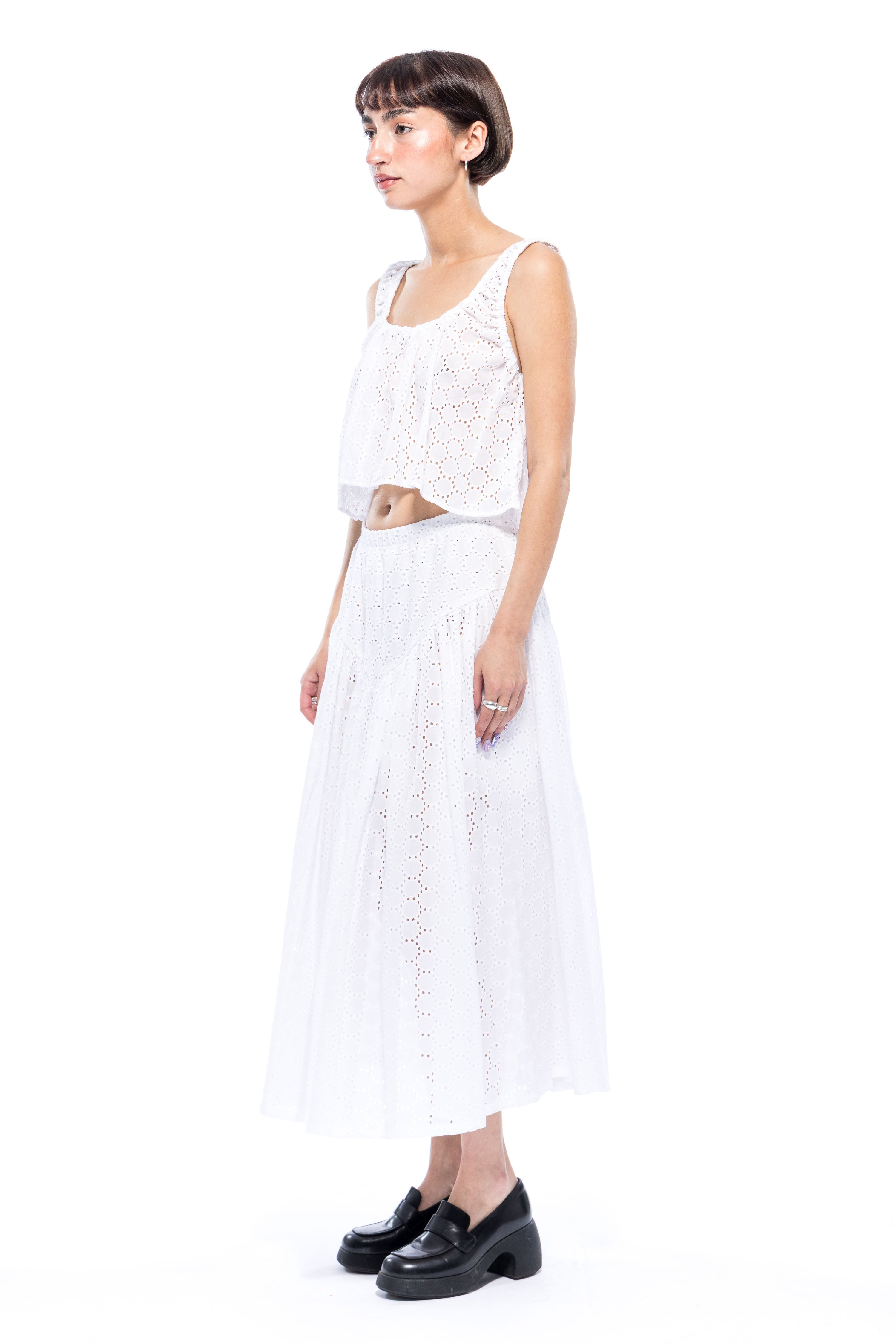 White Eyelet is an unlined eyelet fabric and is slightly see through.