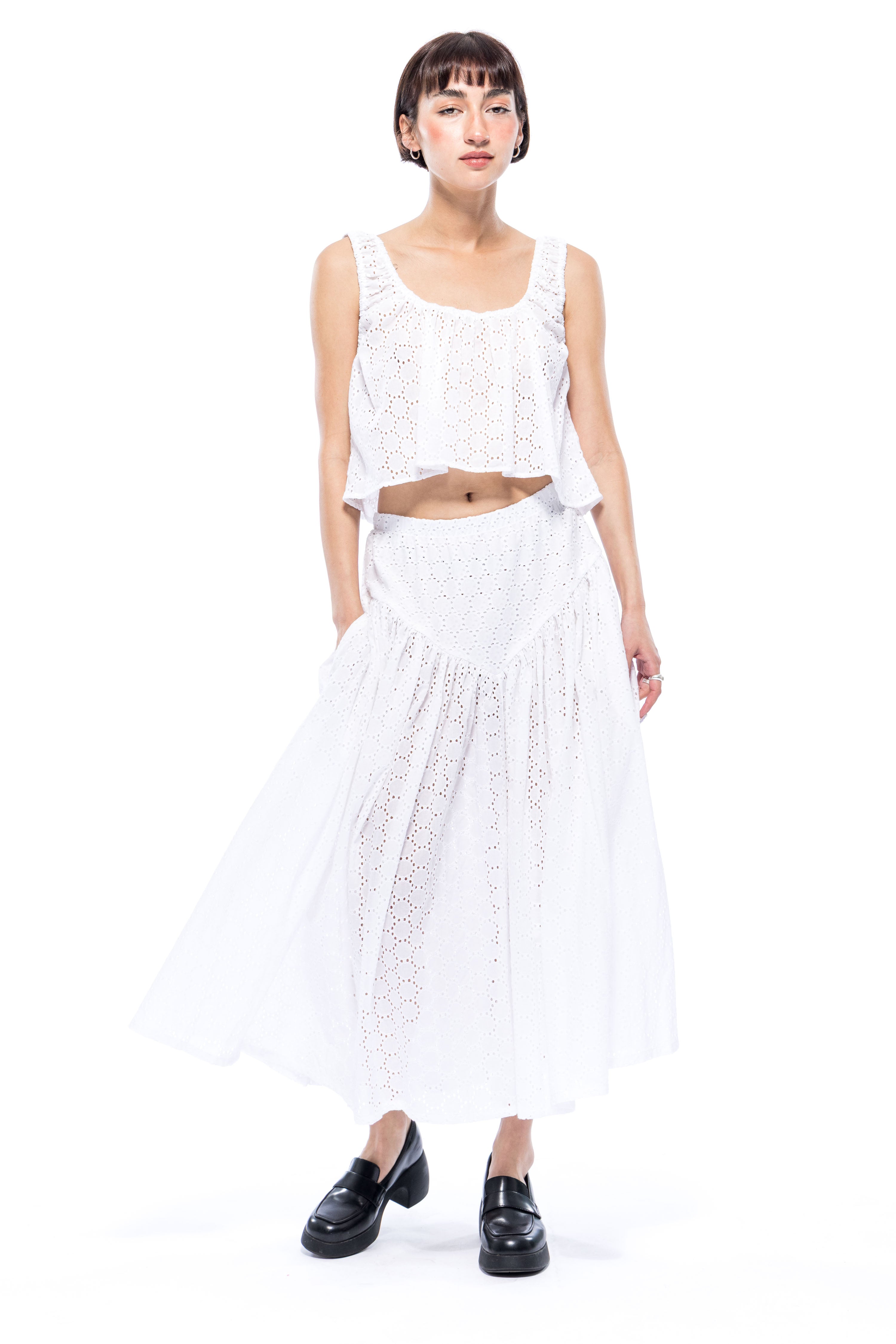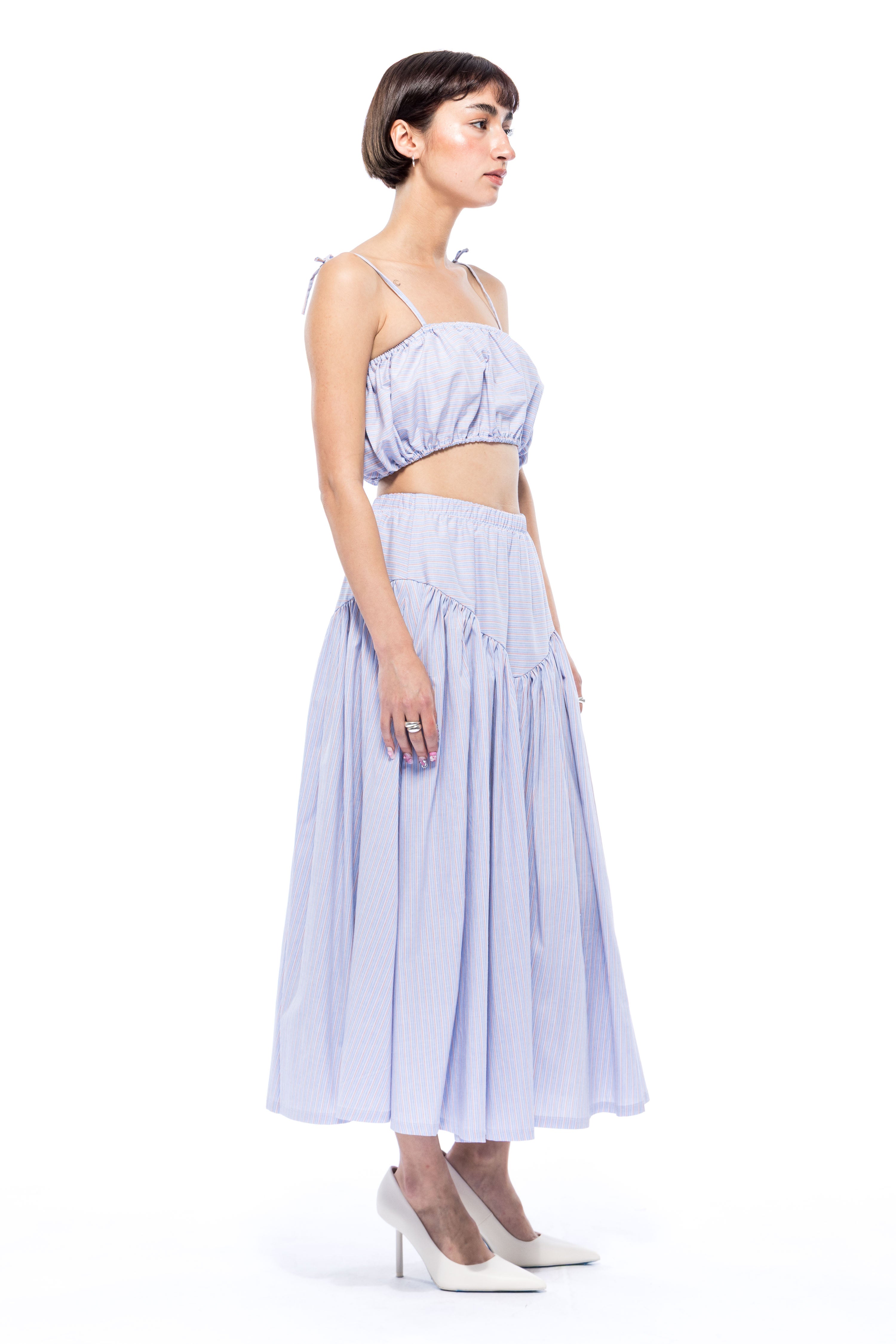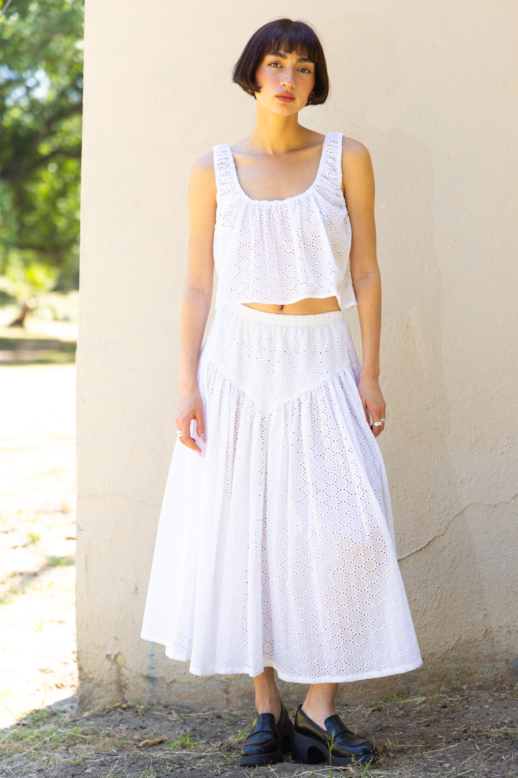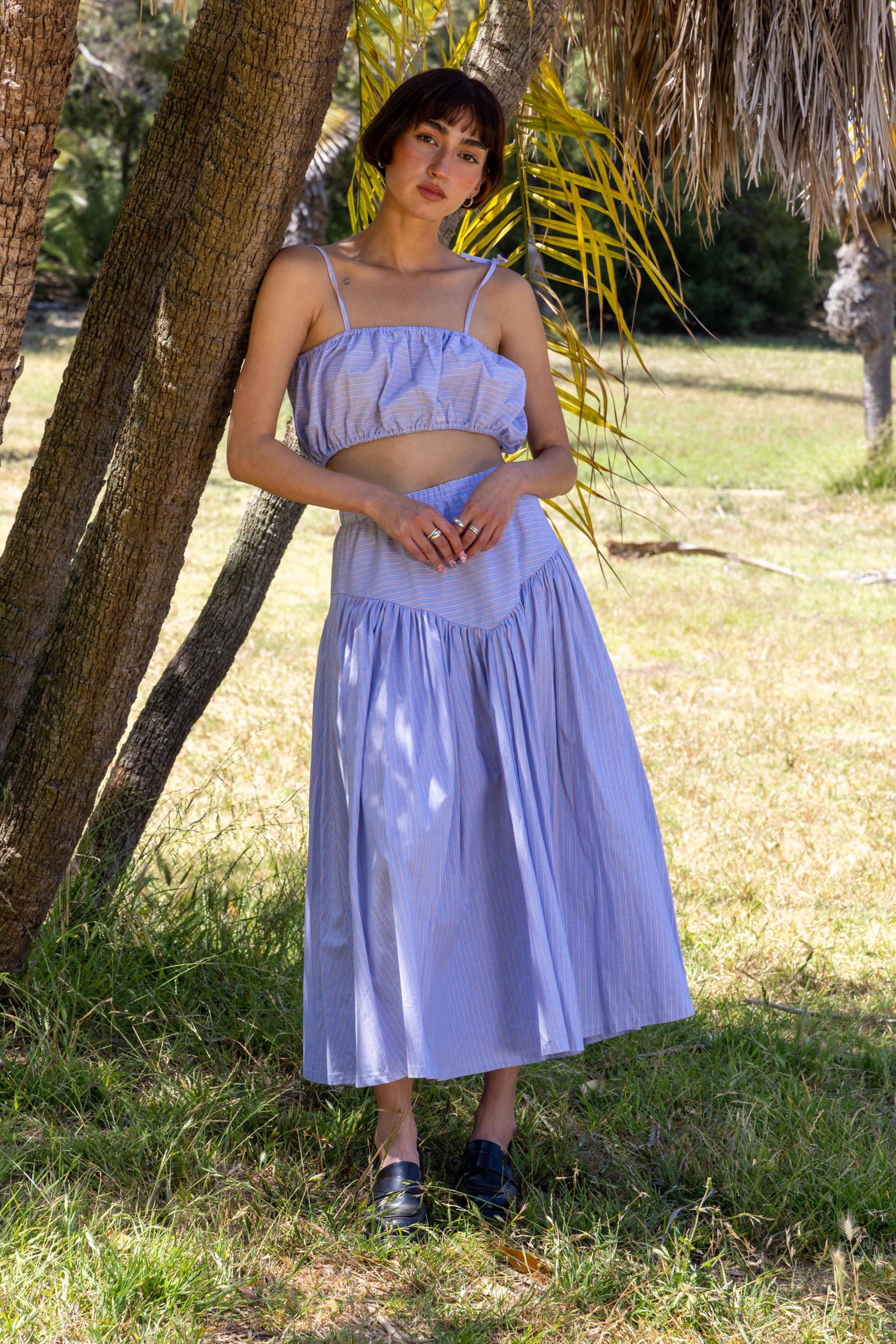 A simple 80's inspired skirt, the Zadie Yoke Skirt is perfect for everyday. Easily pairs with your button shirt or tee. Matching Saturn Bandeau and Elasticated Tank Top available to make the set.